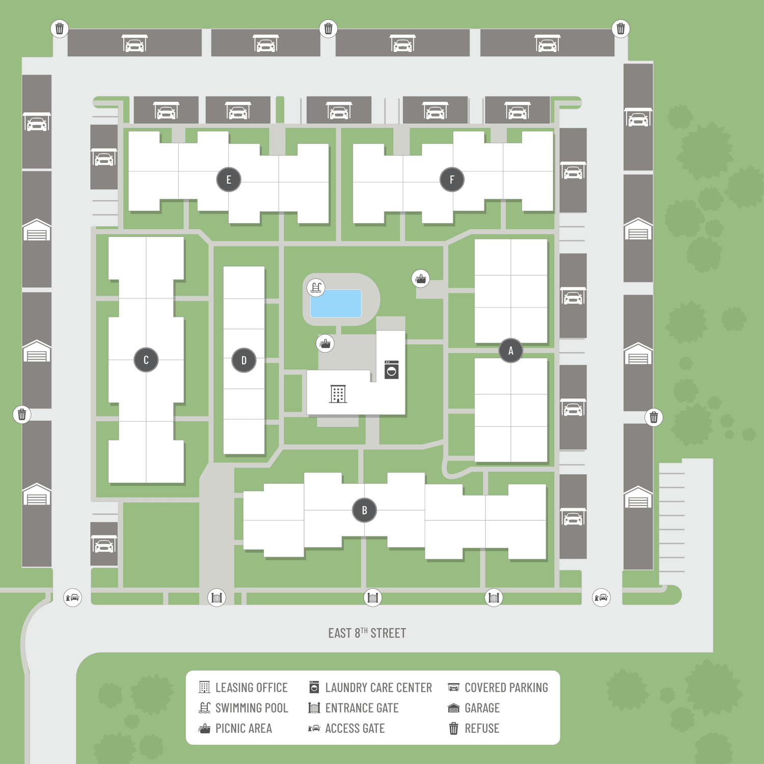 Select a floor plan or bedroom count to view those units on the overhead view on the site map. If you need assistance finding a unit in a specific location please call us at 626-239-8958 TTY: 711.